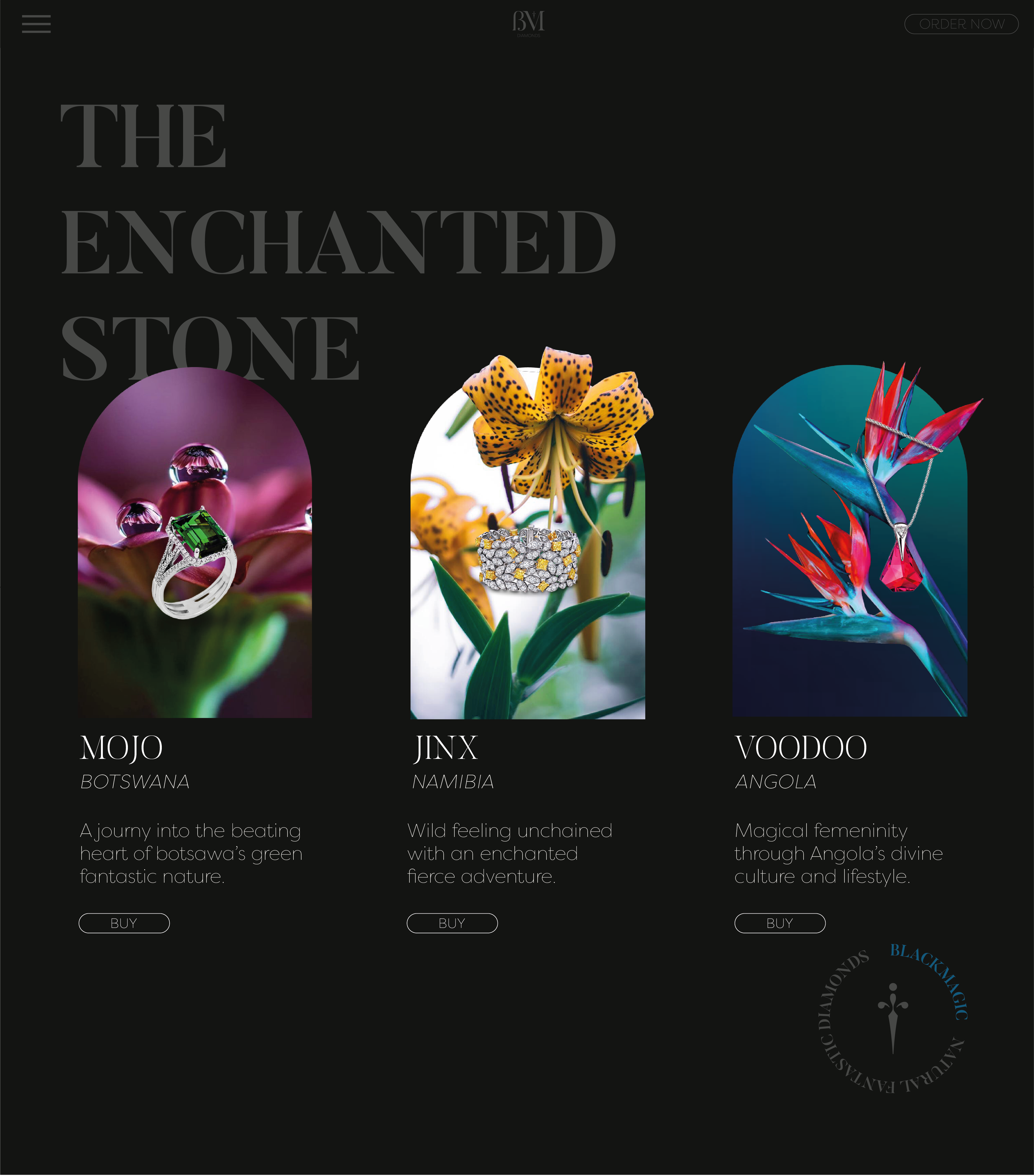 Black Magic Diamonds is an African company that brings the diamond-making process to the front. Showing through design, the fantastic creation of diamonds from their natural form.